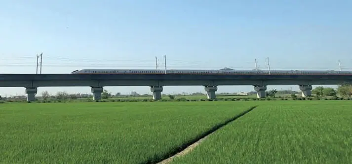 | 台湾最大の穀倉地帯である嘉南平野を貫くように台湾高速鐵路(台湾高鐵)が突っ走っている。 2004年日本から新幹線の車両技術を現地導入して完成した。この地を沃野に変えたのが八田與一だ。 |
