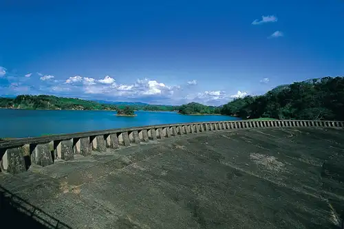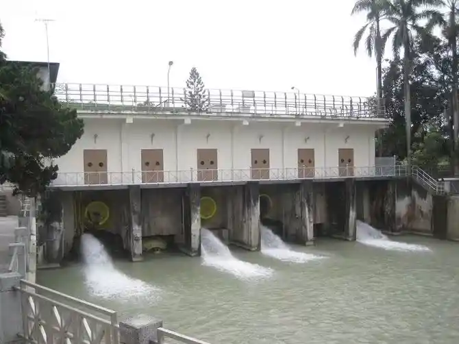 | 満々と水を貯めた烏山頭ダム | 烏山頭ダムの水門 |